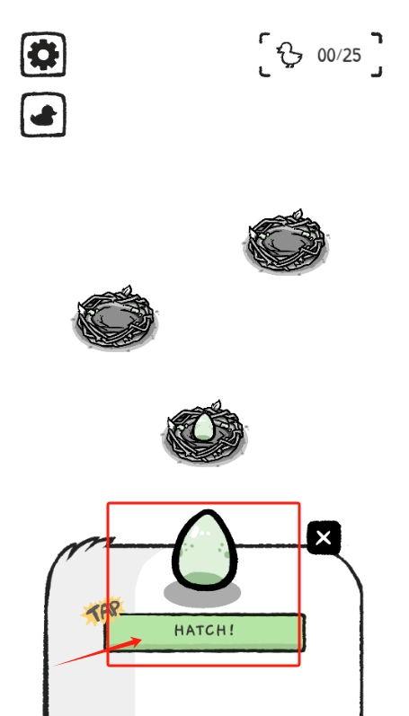 点击HATCH按键就能启动孵蛋程序,此刻下方鸟巢内的蛋正处于孵化状态。