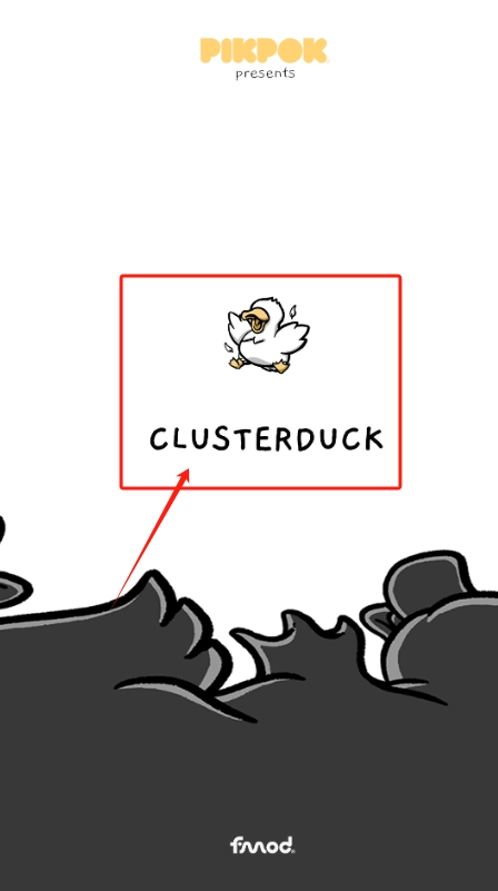 这是一张游戏宣传图,画面里有个被红框圈起来的戴眼镜鸭子形象,它是游戏的主角,图片下方标注着游戏名称CLUSTERDUCK。