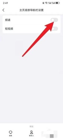 进入主页底部导航栏设置页面,点击关闭频道功能开关