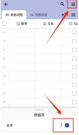 进入信息填写界面后,先在底部输入数据库的名称,接着点击界面右上角的按钮,打开设置选项。