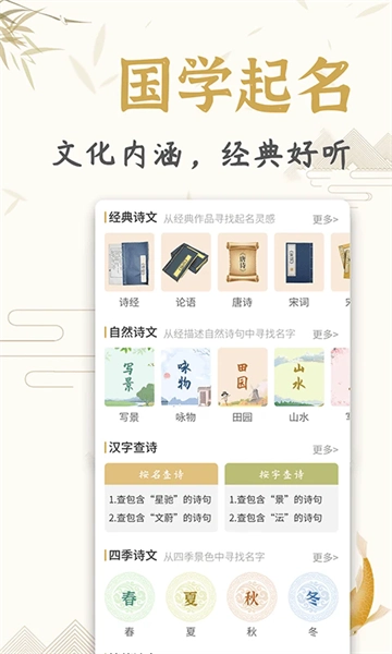 这款起名工具深度融合传统命理中的生辰五行与古典诗词的文化底蕴,同时整合海量汉字姓名数据,通过现代数据分析技术,全面考量名字的时代感、独特性、音律美感、字形搭配、文化内涵及流行走向等多元维度,为用户定制富有深远意境与品质的专属姓名方案。