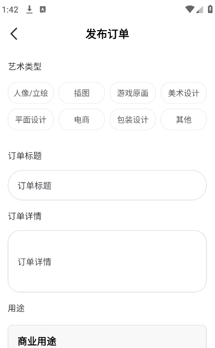 用户登录后,可在工作台界面找到并点击“立即发布订单”按钮,提交自己的绘画需求。