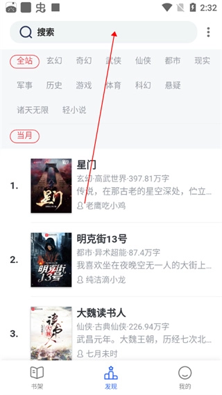 打开软件后,在“发现”界面能看到各类小说,用户可任意点击一本进行阅读。