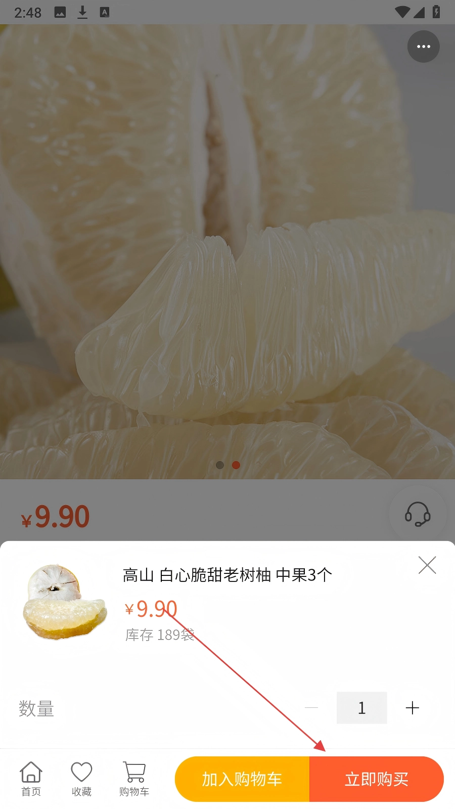 在商品详情页面确认好各项信息无误后,点击页面底部的【立即购买】按钮,即可启动下单流程。