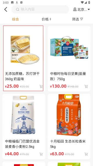 在食品饮料类商品的陈列界面里,挑选出你想了解的商品展示卡片,点击后就能进入该商品的具体信息页面。