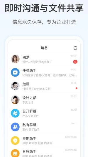 即时沟通:适用于工作场景的企业沟通工具,支持消息历史在线留存。