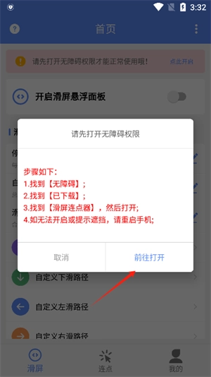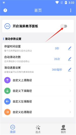 悬浮窗开启完毕后就可以设置滑动参数了。