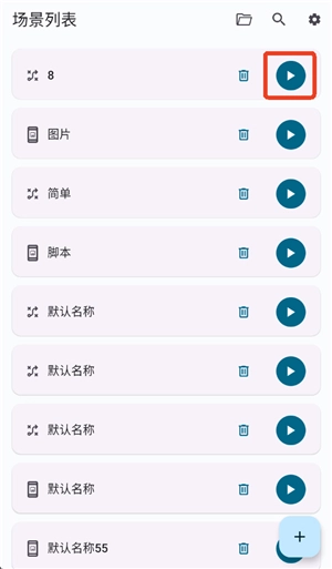 在场景列表中能找到刚创建的脚本,点击其右侧的启动按钮即可。智能模式的操作流程相同,保存后脚本会出现在列表里,同样可以直接使用。