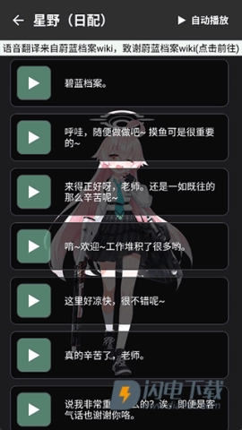 这款软件收录了《蔚蓝档案》里的绝大多数语音包,不仅有日配和中配,还包含了日常对话、战斗语音等多种类型。
