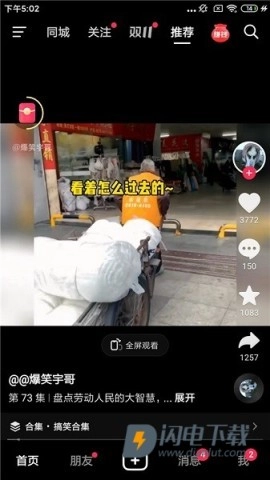 抖音极速版的界面设计简洁直观,底部导航栏仅设有“首页”“同城”“消息”“我”四个功能选项,未包含发布短视频与观看直播的入口,这一设计能让用户的注意力更聚焦于短视频观看体验上。