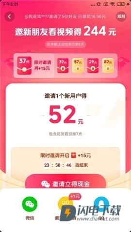 注册成功后就能领取专属红包,观看视频所获红包数量会随观看时长增加而变多。另外,邀请好友还能得到丰厚的现金奖励!