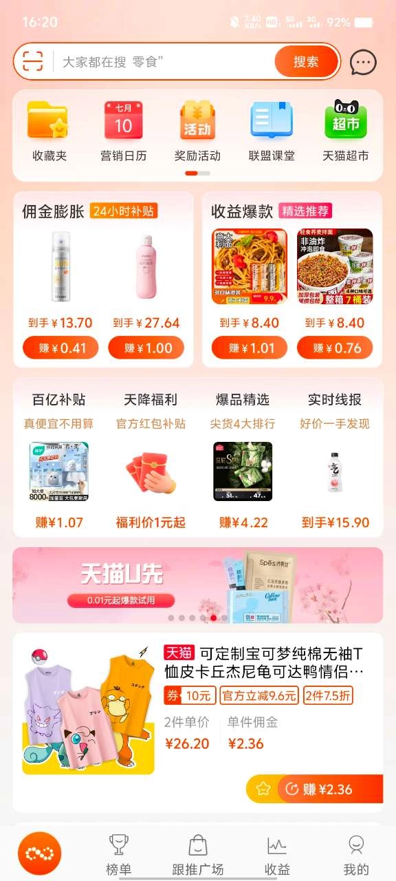 - 接收淘宝联盟的最新推广赚钱动态。