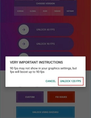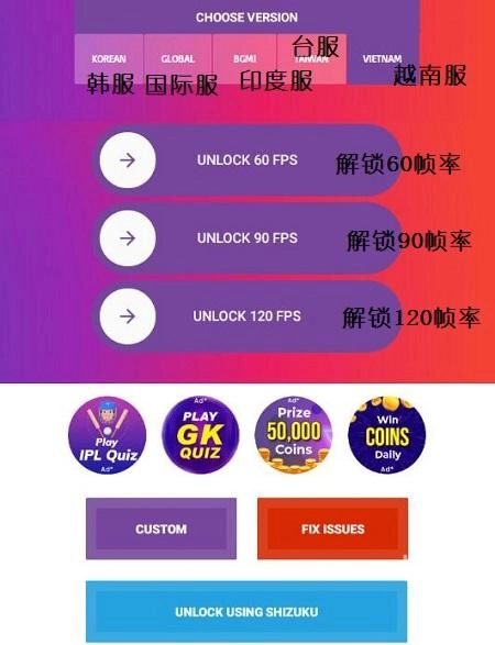 支持越南、印度、国际、韩国、台湾等地区的游戏版本,可按需直接解锁60帧、90帧和120帧的帧率选项。