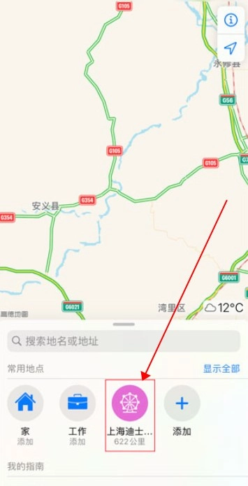 操作结束后回到主页面,下方区域会显示刚添加的新位置信息。