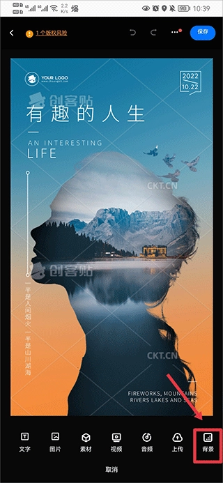 【背景更换】要是觉得当前背景看着不舒服该怎么调整呢?第一步先点击右下角的添加按钮,接着向右滑动找到背景选项并点击,最后从里面挑选一个合适的背景替换就可以啦。