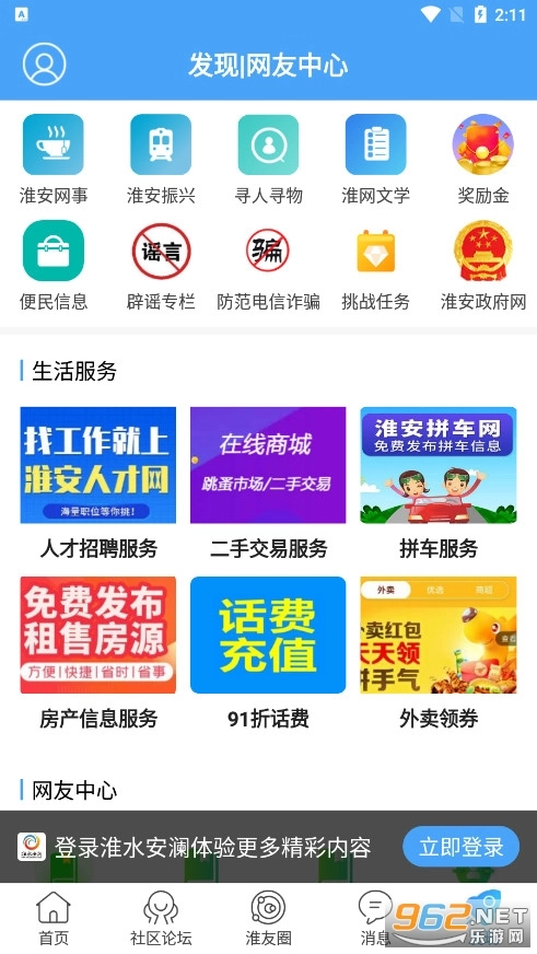 淮网聚焦经济社会发展、政风政纪与民生民情,为淮安下辖的淮阴、清江浦、洪泽、盱眙、金湖、涟水等区县,以及周边泗洪、泗阳、沭阳等地群众,搭建起涵盖阳光纪检、招聘求职、婚恋交友、房产家居、亲子教育、美食旅游、户外运动、寻人寻物、拼车公益、论坛求助等多元内容的信息服务平台。