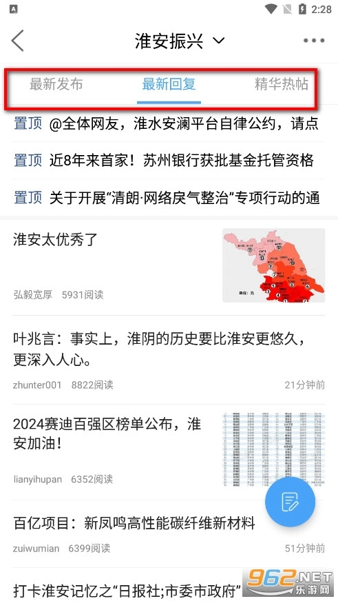 由“最新发布”“最新回复”和“精华热帖”这三个部分构成。