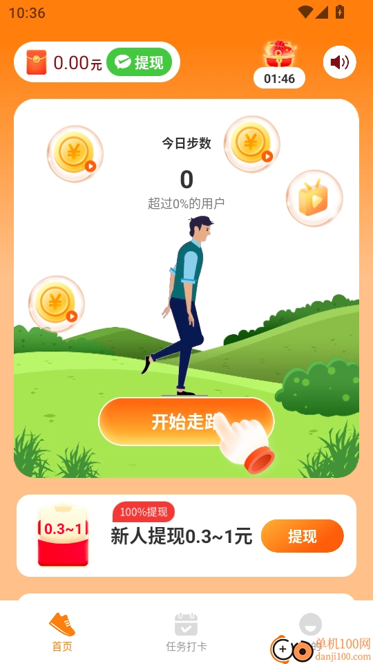 要是您首次使用天天爱走路,一打开就能领取新人金币红包。