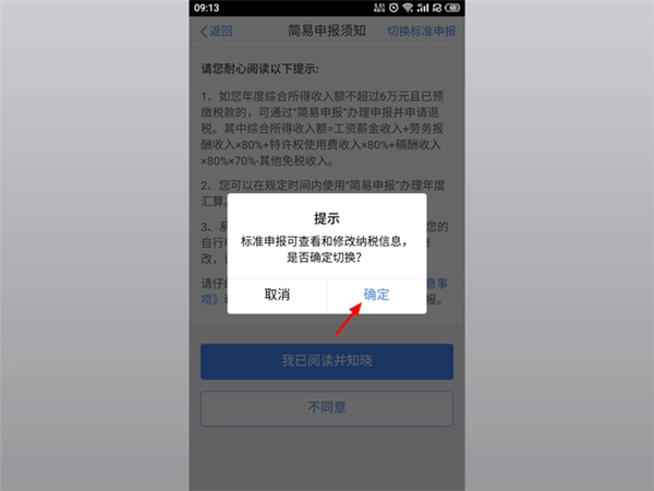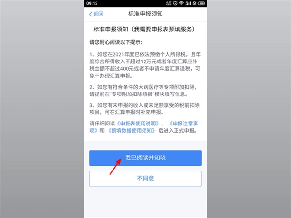 在标准申报须知页面,点击“我已阅读并知晓”按钮。