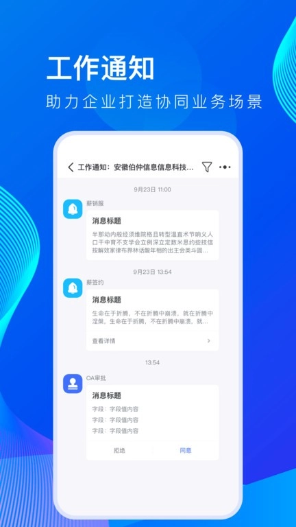 即时通讯:支持适配移动办公场景的即时通讯功能,包括群聊、文件发送、语音聊天等服务。