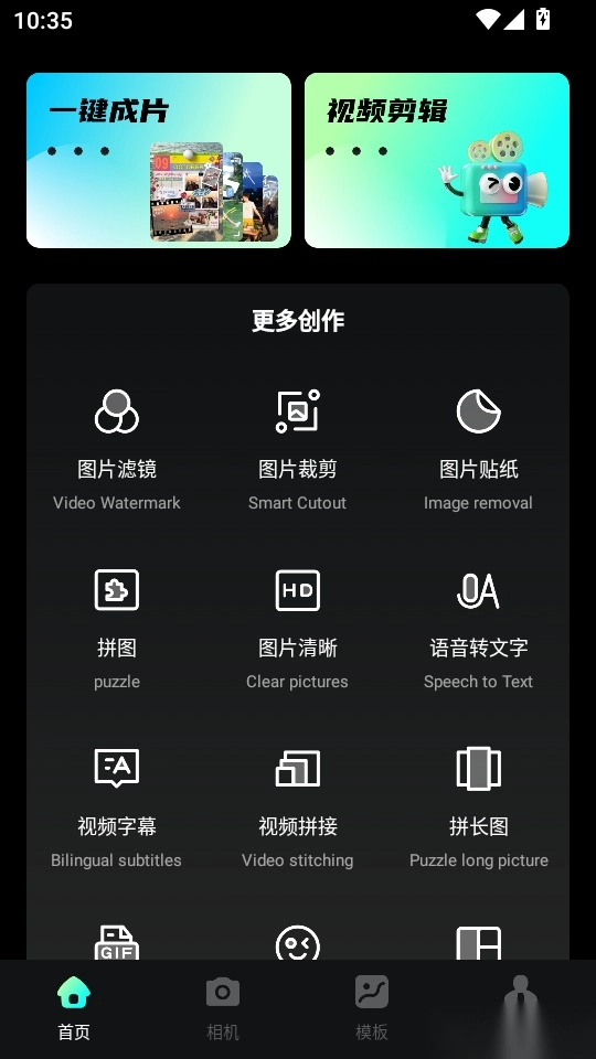 丰富的编辑工具,例如视频拼接、滤镜、裁剪、字幕、分屏等。