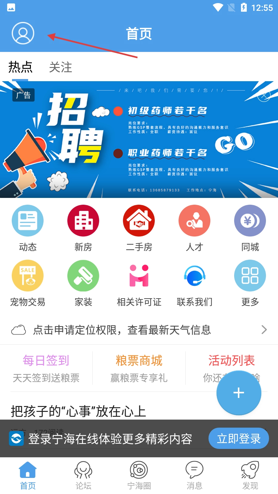 进入软件首页后,点击左上角的个人图标,进入个人中心页面,以便进行登录等操作。