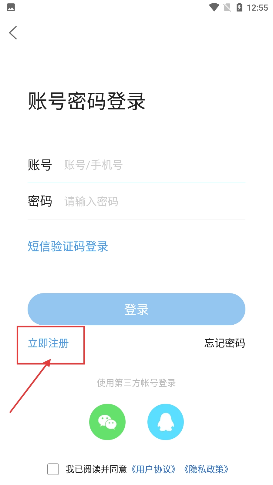 在登录页面,你可以选择通过账号密码的方式登录,也能点击【立即注册】按钮完成账号注册,此外还支持使用第三方账号进行登录。