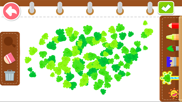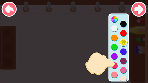丰富的画笔工具:铅笔、蜡笔、毛笔、刷子……宝宝喜欢用哪种工具画画?快来选选!还可以交替使用多种画笔,绘制心中的理想画作。