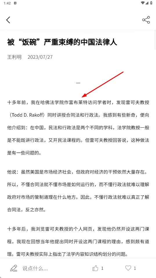 进入资讯详情页面后,就能阅读《被“饭碗”严重束缚的中国法律人》这篇资讯内容,从而了解法律行业的相关分析。