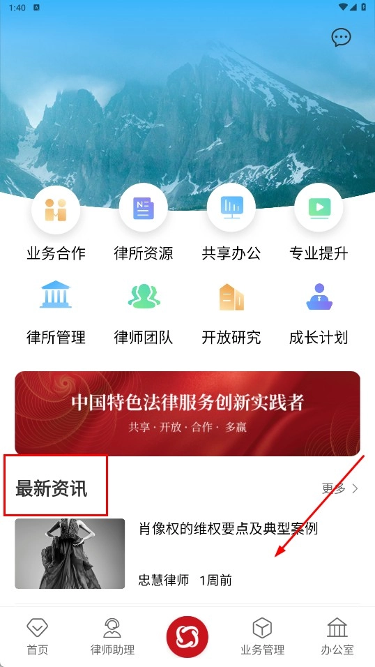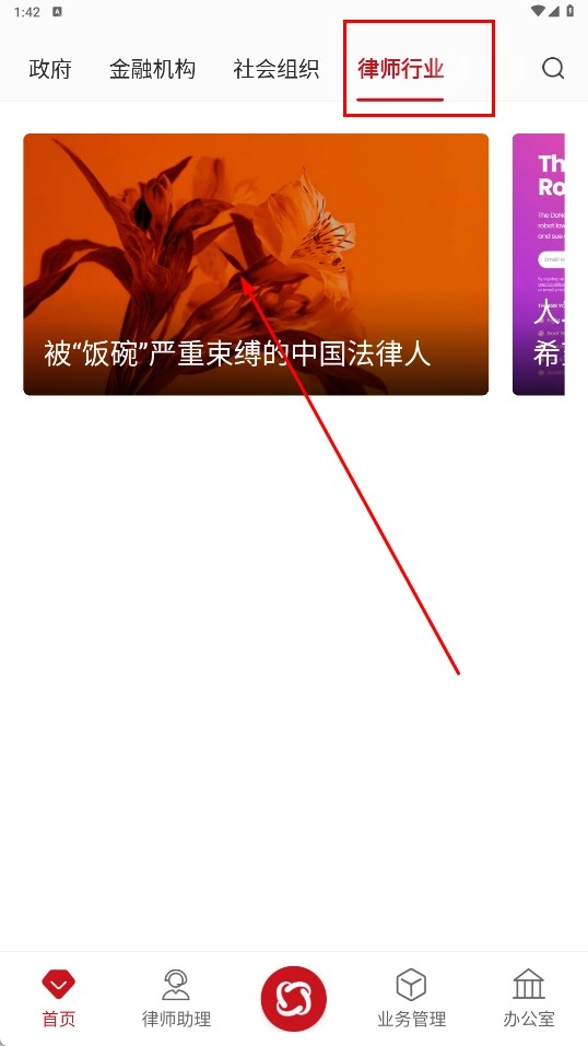 点击顶部的【律师行业-分类标签】,进入律师行业资讯页面后,挑选自己感兴趣的资讯内容。