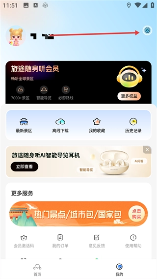 进入【我的】页面后,点击右上角的设置图标。