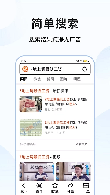 搜狗搜索亲情版旧版本是一款专为老年用户打造的应用,它聚焦老年人的实际需求,以简洁的界面设计提升使用体验。和普通搜索引擎版本相比,该版本没有繁杂的广告,页面显得更清爽有序。考虑到老年人的阅读需求,字体也相应放大,能有效缓解眼部疲劳。除了提供丰富的信息与新闻外,还涵盖小说、天气、图片等板块,支持滑动浏览,方便老年用户轻松查看感兴趣的内容,及时掌握最新资讯。