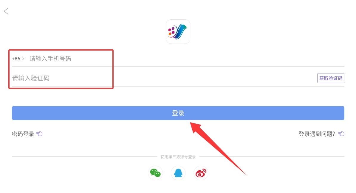进入账号登录界面后,可通过填写手机号获取动态验证码完成登录,也能直接选择第三方社交账号进行快速绑定。