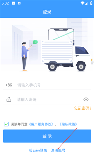 在登录页面输入手机号和密码,勾选相关协议后点击【登录】按钮即可登录;此外,也可以选择【验证码登录】方式,或者点击【注册账号】按钮来完成相应的注册操作。