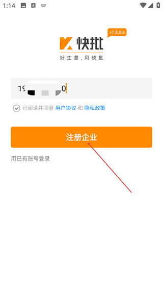 在输入框中填写相关信息后,确认已勾选对应的协议,接着点击橙色的【注册企业】按钮即可完成操作;若已有账号,也可以选择点击【用已有账号登录】选项。