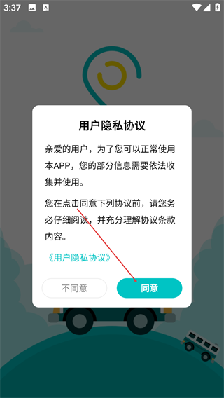 打开应用后,会弹出【用户隐私协议】的提示,仔细阅读条款内容后点击【同意】按钮,就能进入应用的后续界面。