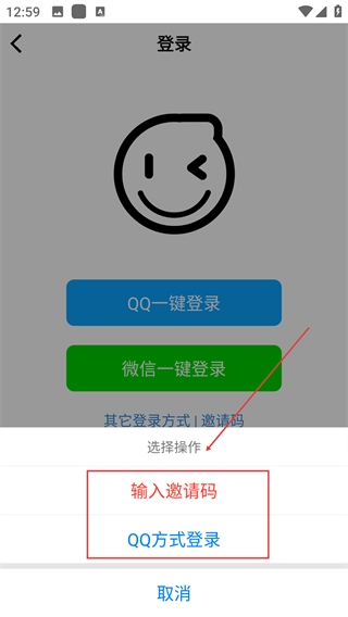 展开其他登录方式后,可选择【输入邀请码】或【QQ登录】,完成相应的登录操作。