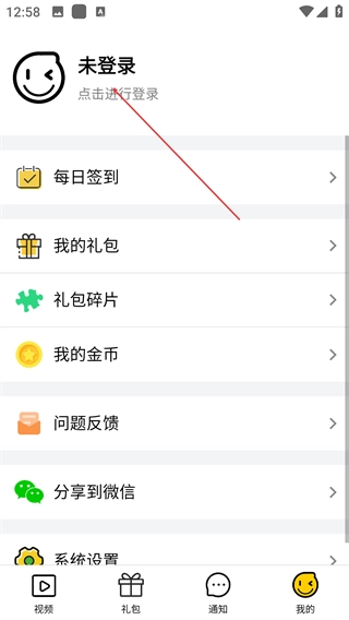 进入【我的】页面后,点击顶部显示的“点击进行登录”提示语,即可进入登录方式选择界面。