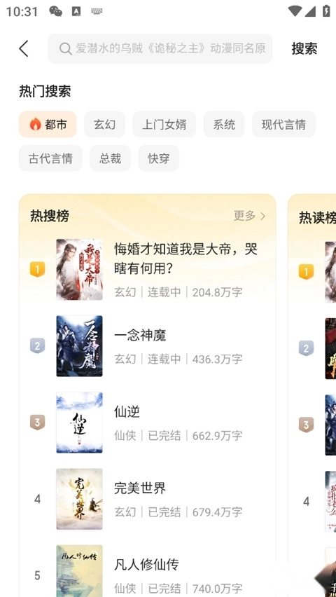 美观易用的用户界面,原汁原味的小说阅读。