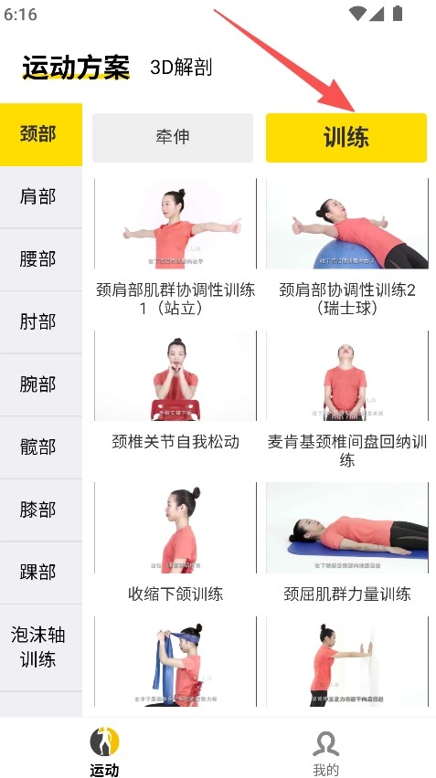 功能模块划分清晰,主要包含运动规划与三维解剖两大模块。其中,动作方案部分又进一步细分为拉伸和训练两类,这样的结构设计既清晰明了,也让操作更加便捷。