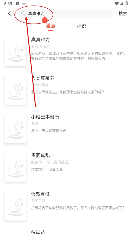 打开软件,进入搜索框搜索喜欢的漫画资源。