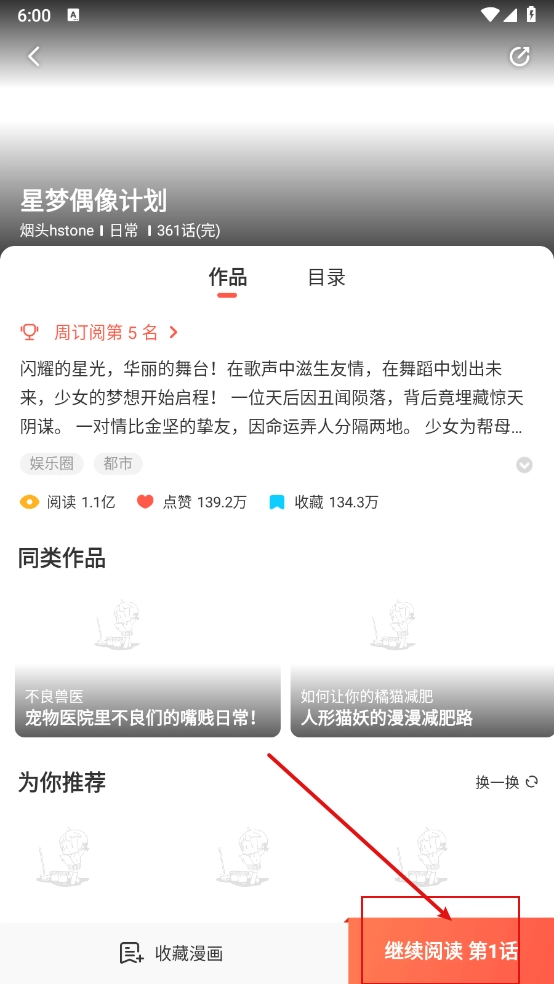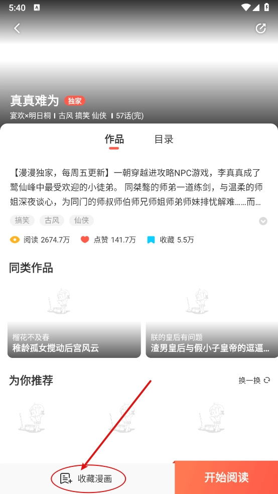 一键打开进入详情页,点击"收藏漫画"。