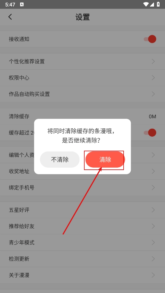 若需手动清理,点击“清除缓存”按钮,会弹出确认弹框,再点击“清除”按钮就完成了。