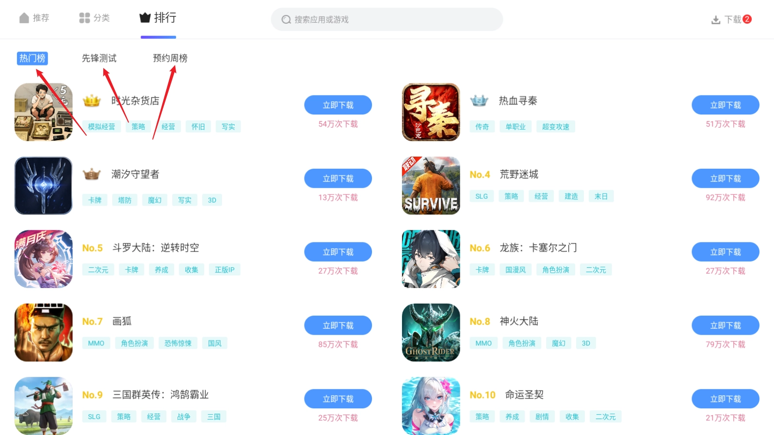 在排行榜板块中拥有多个游戏榜单可以随时查看。
