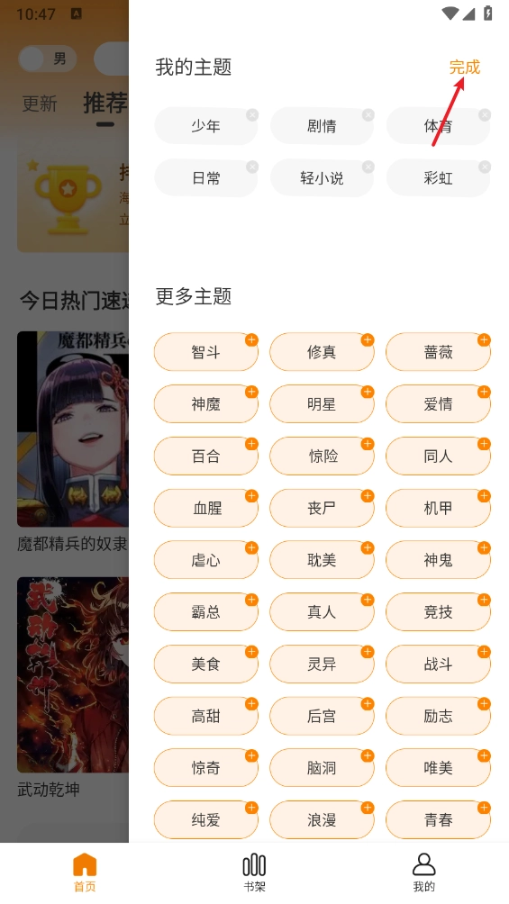如图所示,挑选你喜爱的漫画主题进入,点击“完成”按钮就可以了。