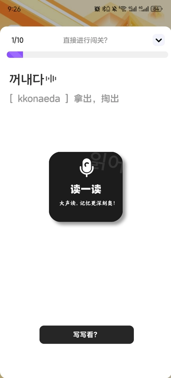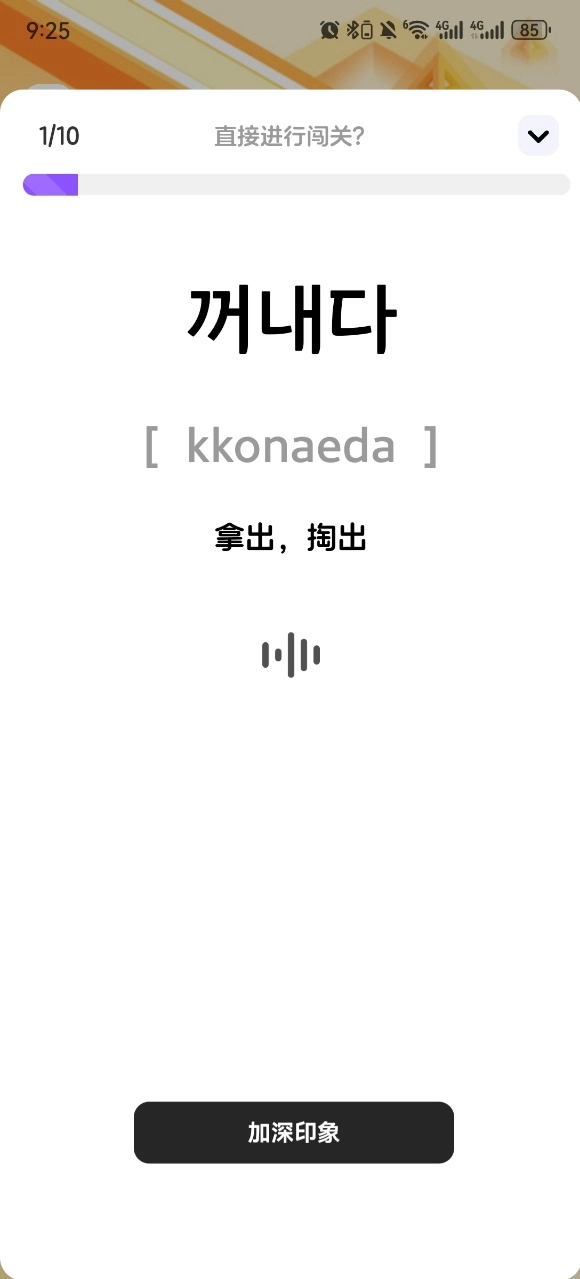 一键点击进入就可以直接闯关练习,还有语音教学。