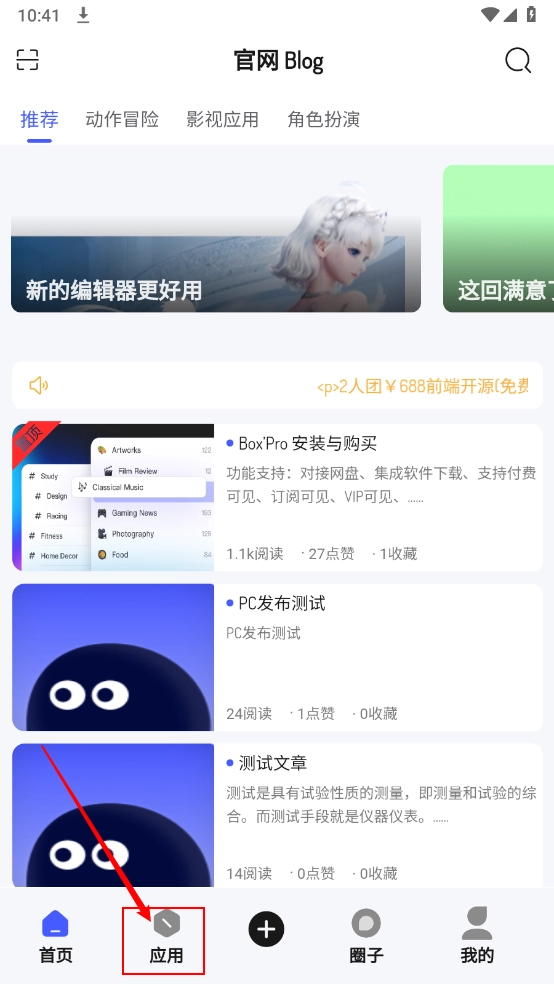 进入主页,点击"应用"板块进入。