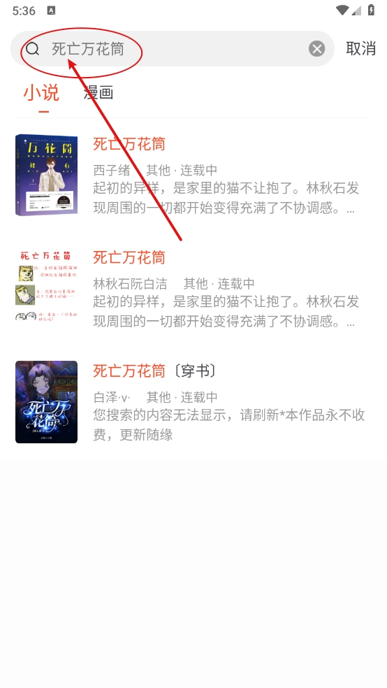 点击右上方的搜索框,一键搜索喜欢的小说。