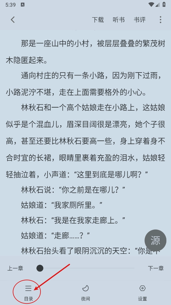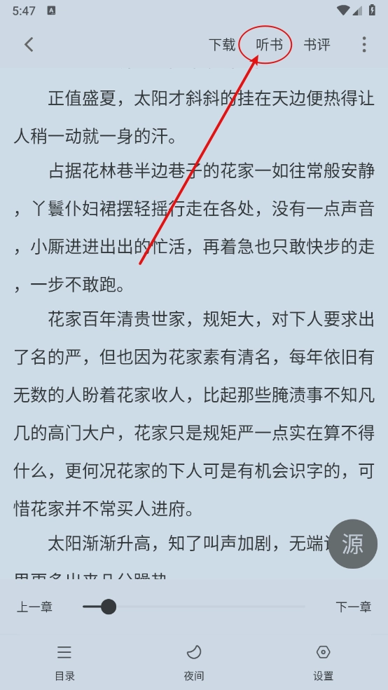 点击中央区域呼出菜单,接着点击右上方的"听书"。