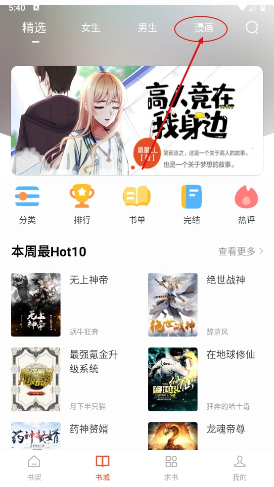 在书城板块,点击"漫画"进入。